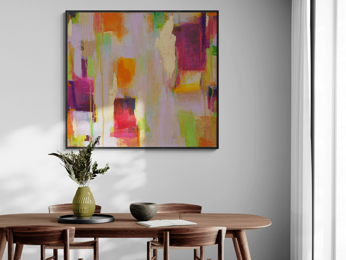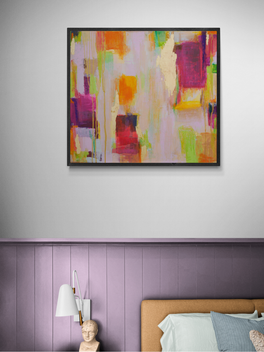 ‘SIZE’ refers to the finished framed canvas size. Artworks printed on canvas have an additional 5cm blank border all around to enable the canvas to wrap around the frame when stretched.